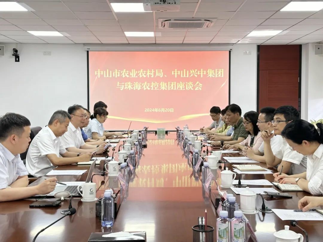 6月20日,中山市農(nóng)業(yè)農(nóng)村局黨組成員、副局長鄧金敏,中山興中集團(tuán)黨委書記、董事長李嘉航一行到珠海農(nóng)控集團(tuán)調(diào)研座談。珠海農(nóng)控集團(tuán)黨委書記、董事長李鴻斌,副總經(jīng)理鐘華參加座談。