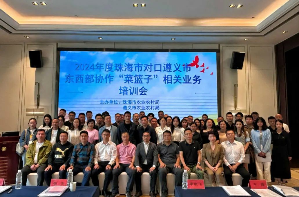 4月2日,由遵義市農(nóng)業(yè)農(nóng)村局、珠海市農(nóng)業(yè)農(nóng)村局、粵黔協(xié)作遵義工作組聯(lián)合主辦,珠海農(nóng)控農(nóng)產(chǎn)品物流園有限公司、珠海農(nóng)控供港澳農(nóng)產(chǎn)品檢測技術(shù)有限公司承辦的2024年度珠海市對(duì)口遵義市東西部協(xié)作“菜籃子”相關(guān)業(yè)務(wù)及農(nóng)產(chǎn)品供港澳外貿(mào)培訓(xùn)會(huì)在遵義成功舉辦。珠海市農(nóng)業(yè)農(nóng)村局、珠海市市場監(jiān)督管理局、遵義市農(nóng)業(yè)農(nóng)村局、珠海農(nóng)控農(nóng)產(chǎn)品物流園菜籃子有限公司相關(guān)領(lǐng)導(dǎo)及遵義市種養(yǎng)殖企業(yè)(專業(yè)合作社)、珠海市農(nóng)產(chǎn)品供應(yīng)鏈管理協(xié)會(huì)企業(yè)代表等共80余人參加了本次培訓(xùn)會(huì)。