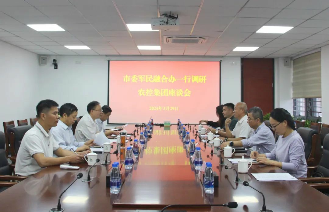 近日,市委軍民融合辦、市國動(dòng)辦副主任李文儒一行到珠海農(nóng)控集團(tuán)進(jìn)行走訪調(diào)研,了解企業(yè)發(fā)展、國防動(dòng)員潛力以及國防教育工作情況。珠海農(nóng)控集團(tuán)黨委書記、董事長李鴻斌,黨委副書記、董事劉國濤參加座談。
