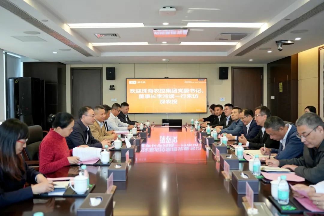 3月19日,珠海農(nóng)控集團黨委書記、董事長李鴻斌一行拜訪深圳農(nóng)業(yè)與食品投資控股集團有限公司(以下簡稱“深農(nóng)投”),與深農(nóng)投黨委書記、董事長黃偉座談交流。