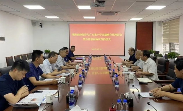 為貫徹落實市委、市政府工作部署,2023年6月9日,珠海農(nóng)控集團下屬珠海市農(nóng)控海洋產(chǎn)業(yè)發(fā)展有限公司(簡稱“農(nóng)控海洋公司”)與廣東水產(chǎn)學會舉行戰(zhàn)略合作座談會暨合作意向協(xié)議簽約儀式。珠海農(nóng)控集團副總經(jīng)理鐘華、廣東水產(chǎn)學會黨支部書記吳灶和、理事長林蠡、秘書長陳健光、秘書劉忠輝參加會議。農(nóng)控海洋公司副總經(jīng)理吳文中主持會議。